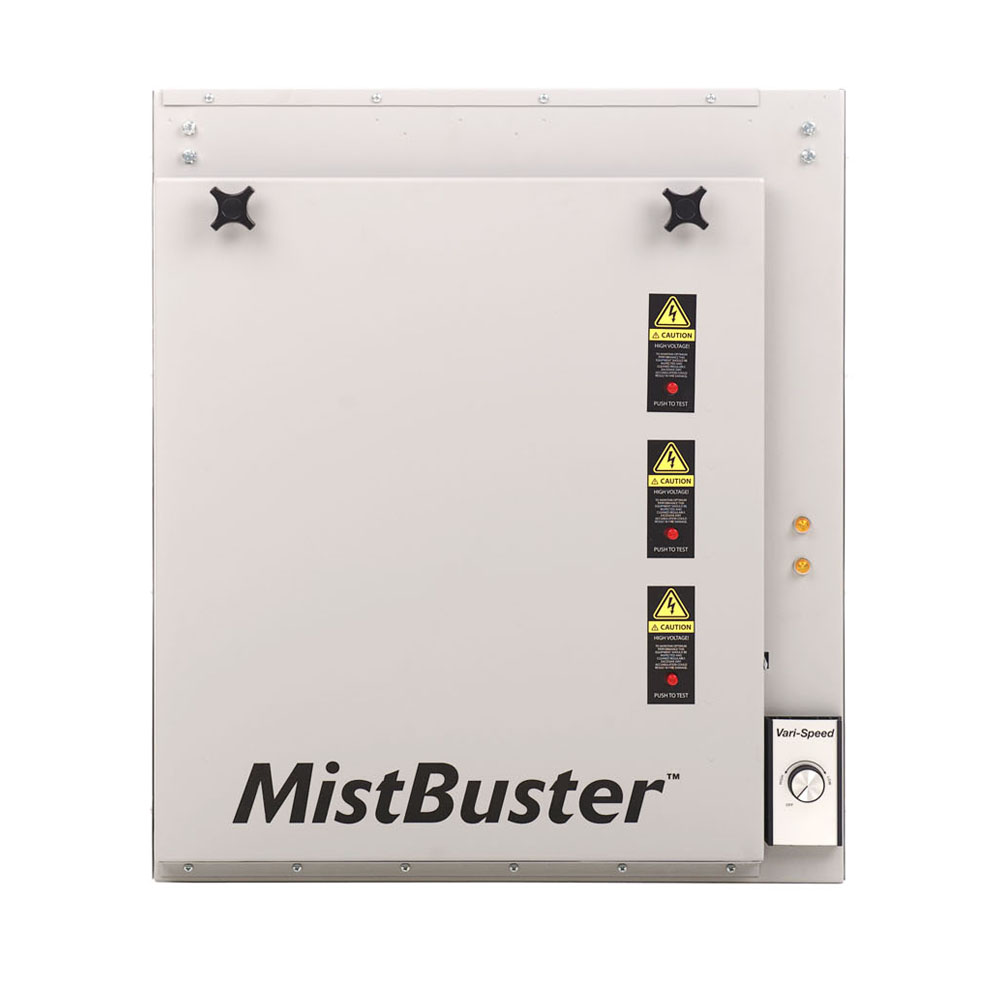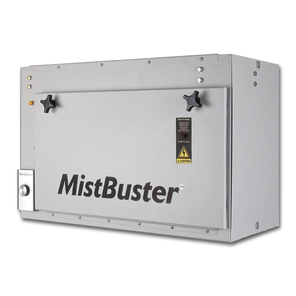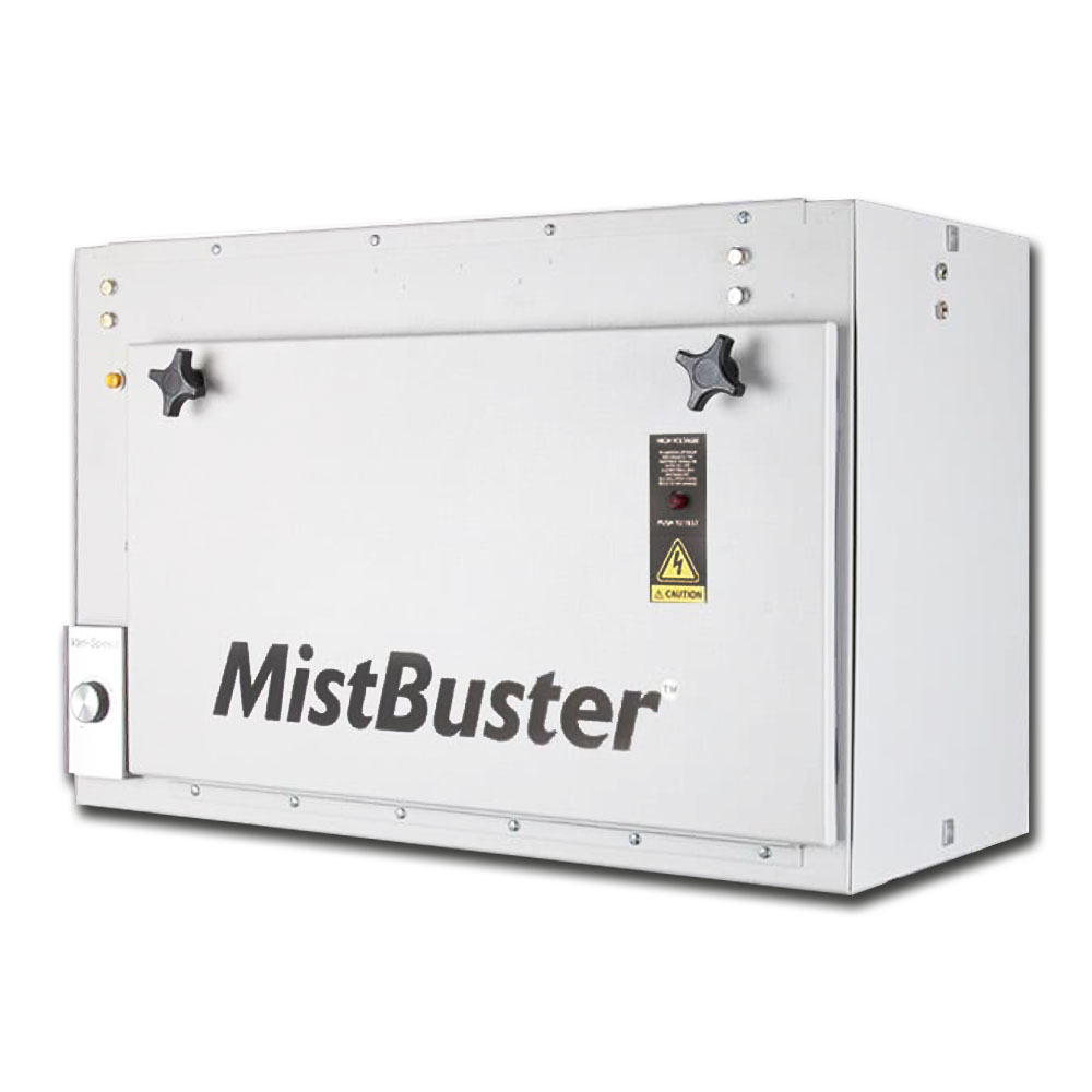 A MistBuster is an air filtration unit designed to remove mist, smoke, and airborne particles generated by machining and manufacturing processes. It uses advanced electrostatic technology to capture and clean oil mist and coolant particles from the air, improving air quality and creating a safer, cleaner work environment.